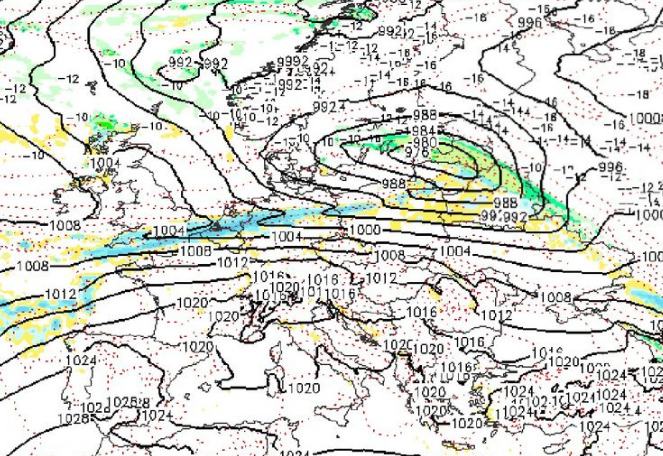 Во претходните 24 часа силен циклон од Северното Море помина над југот на Скандинавија и Данска. Донесе бурни ветрови и обилни дождови во Централна Европа и Данска, а обилен снег падна на југот на Норвешка. Циклонот сега се движи кон истокот на Европа и ќе ја зафати Русија. Во овој момент над Белорусија се движи силен циклон од северот на …