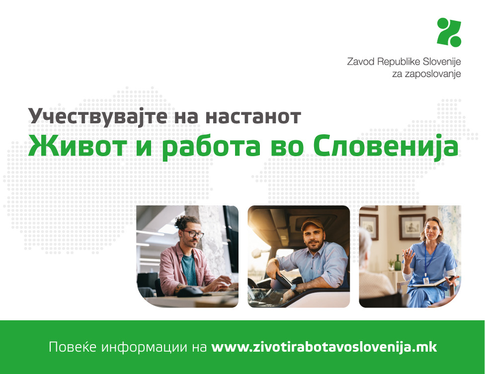 По минатогодишните успешно организирани настани со наслов: „Живот и работа во Словенија“, Заводот за вработување на Република Словенија, во првата недела од декември ќе организира уште три слични настани, на кои словенечките работодавачи ќе имаат можност да се поврзат со барателите на работа од цела Македонија. На настаните оваа година ќе присуствуваат 22 реномирани словенечки работодавачи од различни делови на Словенија, кои вработуваат вкупно …