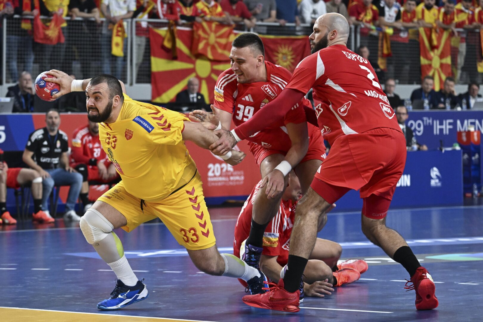 Ракометната репрезентација на Македонија по првиот дел има негатива од три гола во дуелот со Холандија, во второто коло на Светското првенство. По израмнетиот почеток на мечот Холанѓаните се одвоија на 2:4, Македонија експресно се врати и до 23.минута буквално се играше гол за гол. Во завршните седум минути од полувремето, избраниците на Кире Лазаров зачестија со грешките во нападот, …