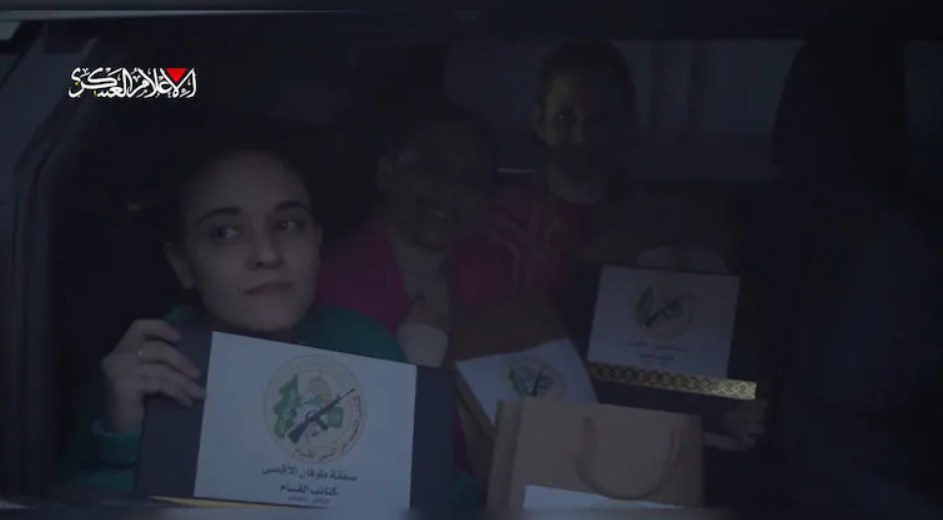 Членовите на Хамас им дадоа „торби со подароци“ на заложниците кои беа ослободени вчера, се гледа во видеото објавено од палестинската милитантна група, пренесоа израелските медиуми. Во торбите што ги добиле трите жени ослободени од заробеништво имало нивни фотографии во заробеништво на Хамас и „сертификат“, пренесе „Тајмс оф Израел“. На видеото се гледаат поранешните заложници Роми Гонен, Емили Дамари и …