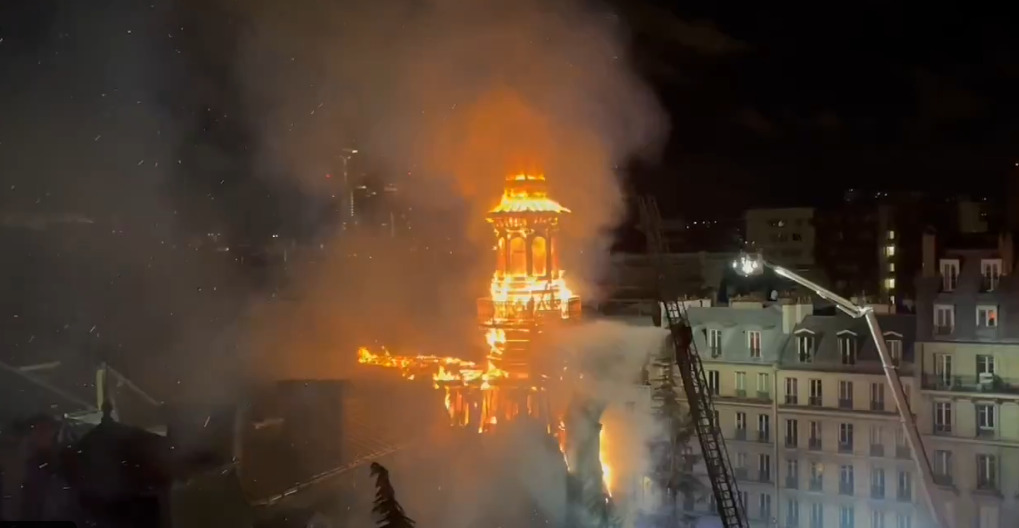 (Видео) Драма во Париз: голем пожар ја зафати општинската зграда, снимката е застрашувачка