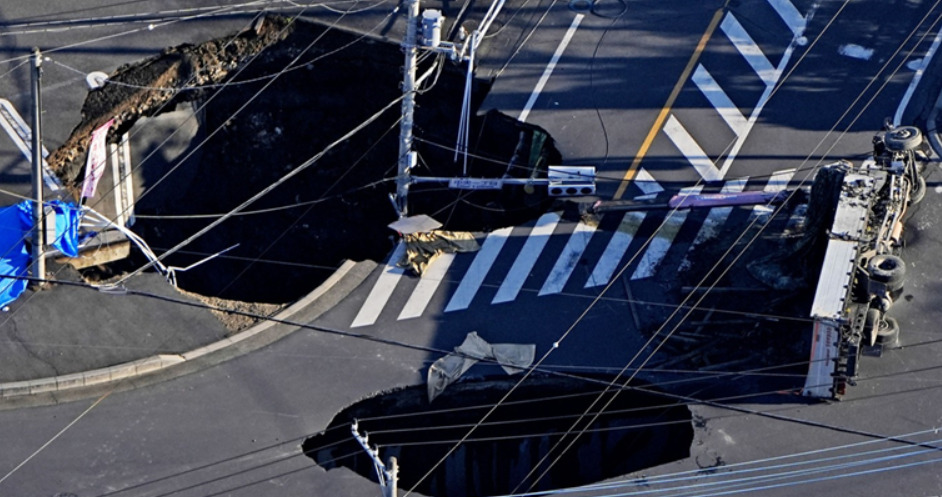 (Видео) Во Јапонија се отвори огромна дупка и проголта камион, не успеаја да го извлечат возачот