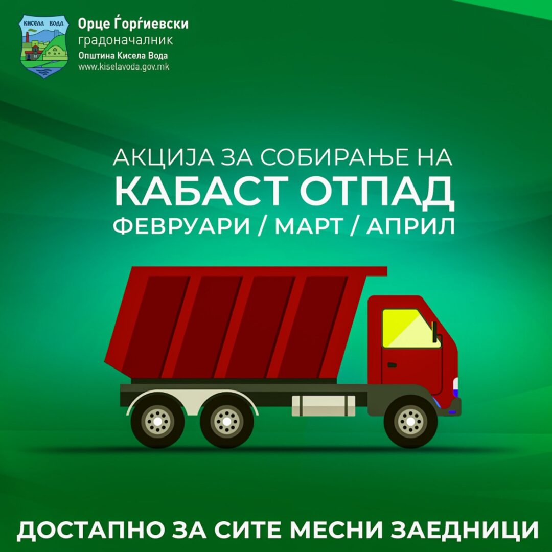 Во насока на заштита на животната средина и овозможување на граѓаните бесплатно да се ослободат од непотребниот кабаст отпад и шут, Општина Кисела Вода преку Секторот за месна самоуправа и социјална заштита, во соработка со Министерството за животна средина, организира тримесечна акција за собирање на кабаст отпад. Оваа акција е дел од акцискиот план на Владата за почист воздух. Акцијата …