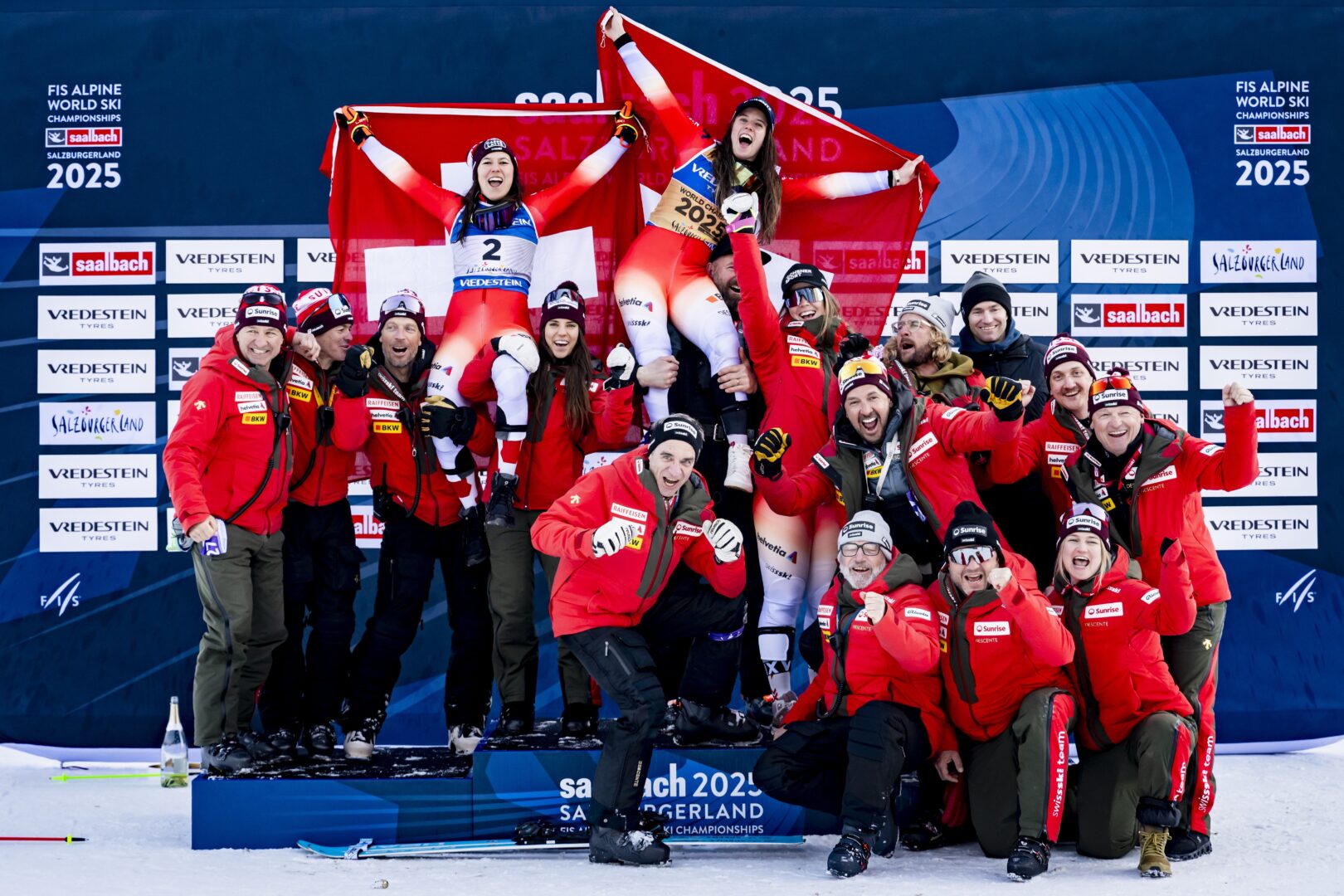Швајцарија ја продолжи доминацијата на Светското првенство во Залбах, Австрија. Репрезентативките на од оваа земја ги освоија првите две места во трката, во слалом. Златото и припадна на брилијантната Камила Раст, која убедливо стигна до тронот. Беше најбрза во првото возење, четврта во второто, што беше доволно за да го постигне најголемиот успех во кариерата со време од 1:58.00 минути. …