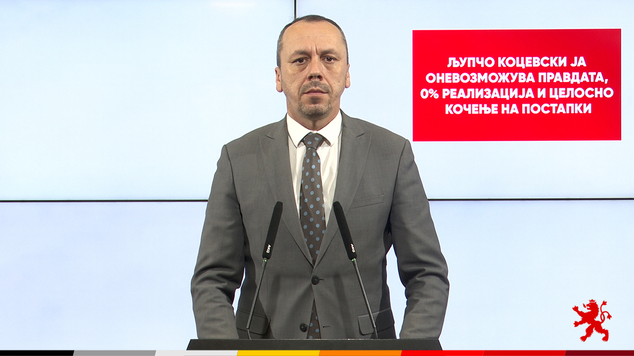 Љупчо Коцевски ја оневозможува правдата, 0% реализација и целосно кочење на постапки. Коцевски како шеф на ЈО покажа дека е безпоговорен послушник на СДС, истакна на денешната прес-конференеција Бране Петрушевски, пратеник на ВМРО-ДПМНЕ. „Дека Љупчо Коцевски не планирал да гони криминал, туку да ги штити кадрите на СДС е непостапувањето против судиите и обвинителите во случајот со Наќе Георгиев и …