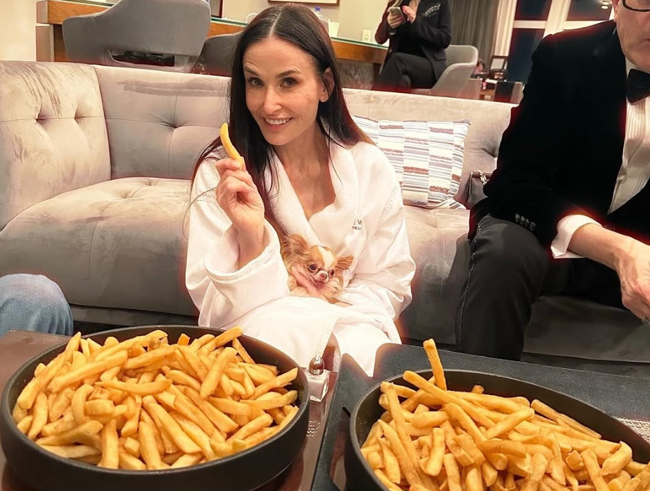 Деми Мур ја избриша шминката и се почести со помфрит по Оскарите