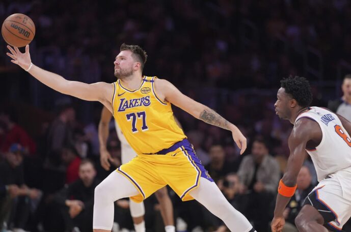 Лос Анџелес Лејкерс ги победија Њујорк Никс со 113:109 по продолжение на домашен терен и го забележаа осмиот последователен триумф во НБА лигата. Најефикасен во тимот на Лејкерс беше Лука Дончиќ со 32 поени, 12 асистенции и седум скока. Леброн Џејмс додаде 31 поен, 12 скока и осум асистенции, Гејб Винсент постигна 12 поени, додека Далтон Кнехт уфрли 11 поени. …
