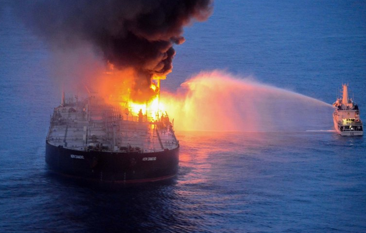 Запален танкер во Северното Море, погоден од контејнерски брод
