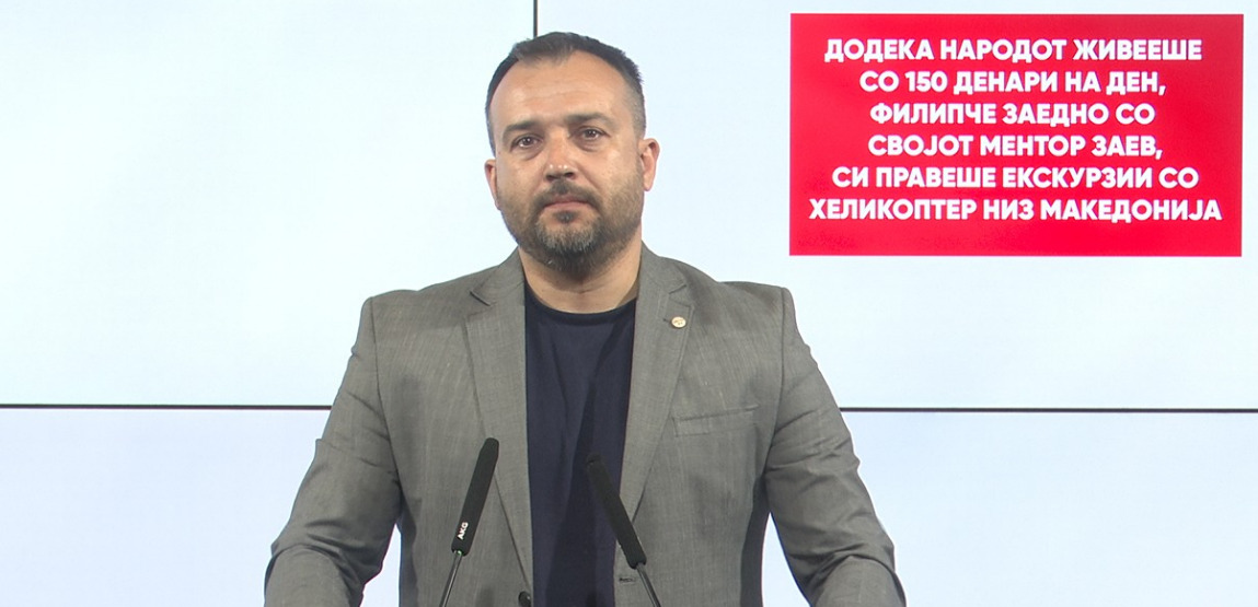 Додека народот живееше со 150 денари на ден, Филипче заедно со својот ментор Заев, си правеше екскурзии со хеликоптер низ Македонија, изјави пратеникот Миле Лефков од ВМРО-ДПМНЕ. „Филипче и неговиот ментор Заев, одеа на настани со хеликоптер во Прилеп и Битола, трошеа државни пари за екскурзии и правење на ќефови. Ќефовите кои си ги тераа криминалниот тандем Заев и Филипче, …