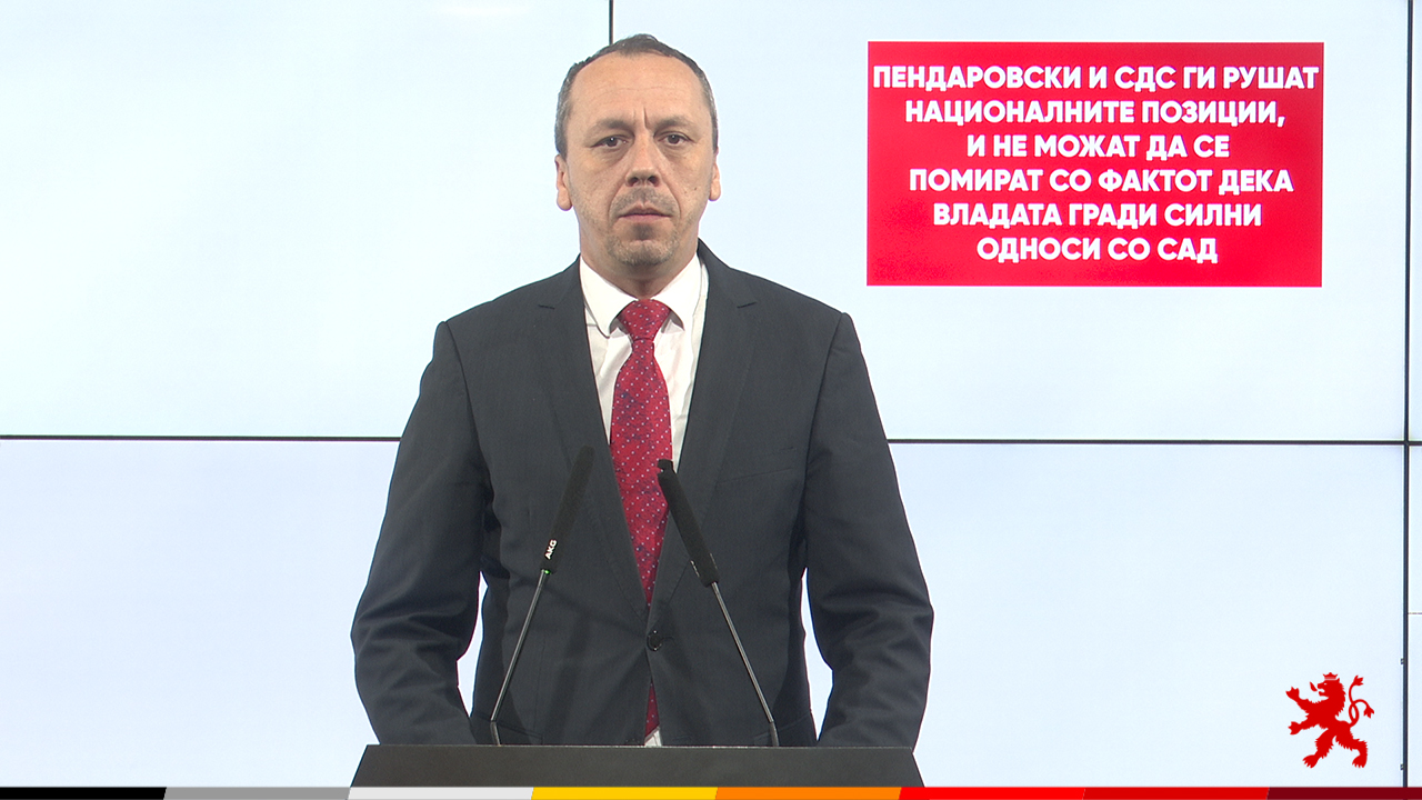 Пендаровски и СДС ги рушат националните позиции, и не можат да се помират со фактот дека Владата гради силни односи со САД, вели пратеникот на ВМРО-ДПМНЕ, Бране Петрушевски. Прашува, кому му служеа изјавите на Стево Пендаровски дека од амбасадори дознал кои се позициите на Владата и како таа се бори за националните интереси во однос на интеграцијата во ЕУ. Дали …