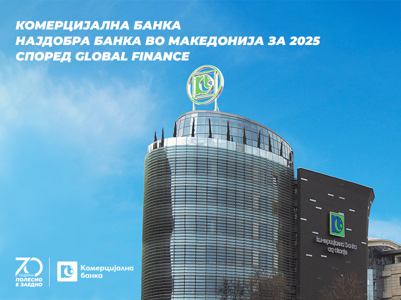 Комерцијална банка прогласена за „Најдобра банка во Македонија за 2025“ од магазинот Global Finance