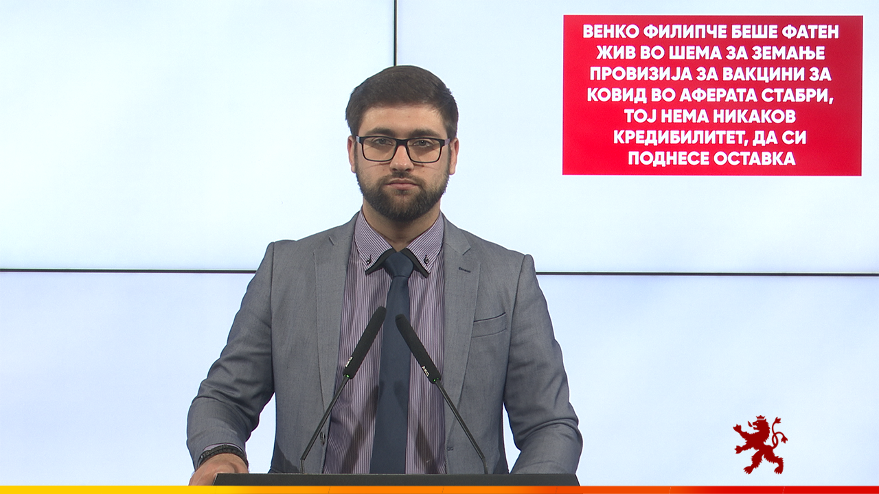 Венко Филипче беше фатен жив во шема за земање провизии за вакцини за „Ковид“ во аферата Стабри, тој нема никаков кредибилитет, да си поднесе оставка, побара Валентин Манасиевски, член на ЦК на ВМРО-ДПМНЕ. „Венко Филипче сакаше да набави кинески вакцини против „Ковид“ во ек на кризата преку фирма регистрирана за тргување со банани и јужно овошје. Оваа фирма со име …