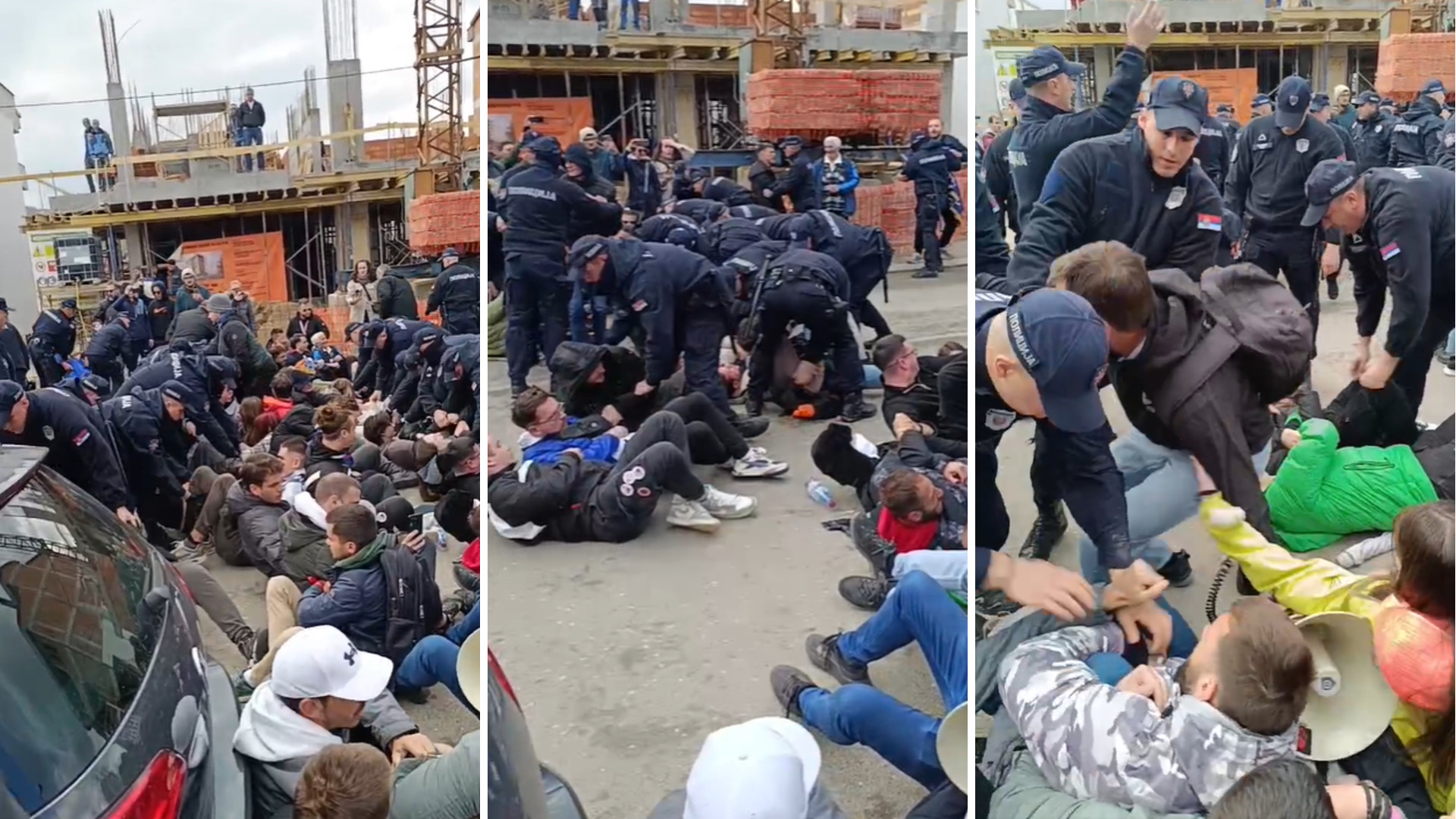 (Видео) Хаос во Србија: полицијата за раце и нозе влечеше луѓе кои ги блокираа автобусите за митинот на Вучиќ