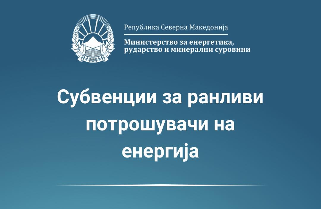 Министерството за енергетика, рударство и минерални суровини потсетува дека уште неколку дена е отворен Јавниот оглас за финансиска поддршка за електрична енергија за ранливи потрошувачи – мерка со која се обезбедуваат 1.000 денари месечно, директно насочени кон намалување на сметките за струја. Поддршката се доделува за период од 12 месеци, сметајќи од денот на поднесување на барањето, а рокот за …