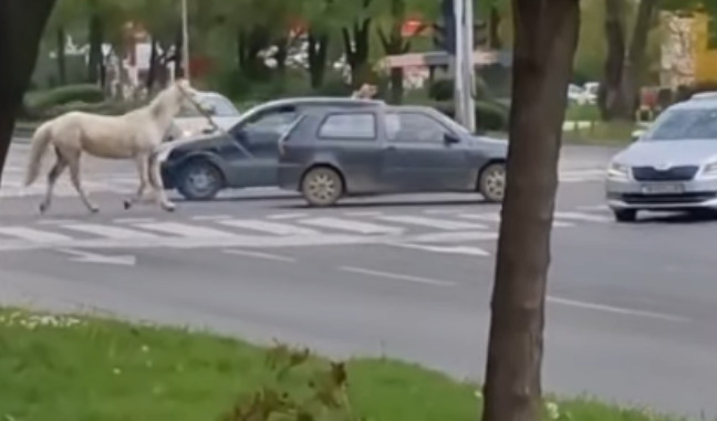 (Видео) Автомобил влече врзан коњ низ Скопје: полицијата го идентификуваше возачот