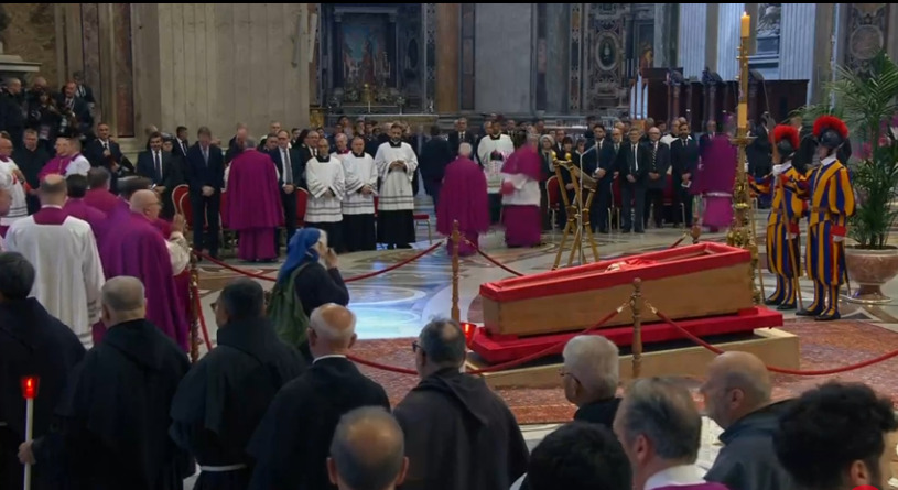 Телото на папата Франциско утринава беше преместено во базиликата Свети Петар за католиците да можат да му оддадат последна почит пред погребот, кој ќе се одржи во 10 часот во сабота. Неговото тело беше пренесено во отворен ковчег од капелата во ватиканската резиденција каде што живееше, во базиликата Свети Петар, во голема поворка со кардинали придружени со латинско пеење. Ковчегот …