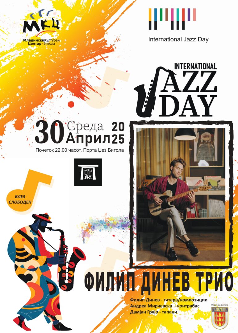 Младинскиот културен центар – Битола (официјален младински клуб на УНЕСКО) за одбележување на Меѓународниот ден на џезот ќе организира концерт во живо на Филип Динев Трио во среда на 30 април 2025 година со почеток во 22.00 часот, во кафе бар Порта Џез во Битола. Филип Динев е македонски гитарист/композитор со интернационална кариера. Магистрант на ХФМТ Хамбург, автор и продуцент …