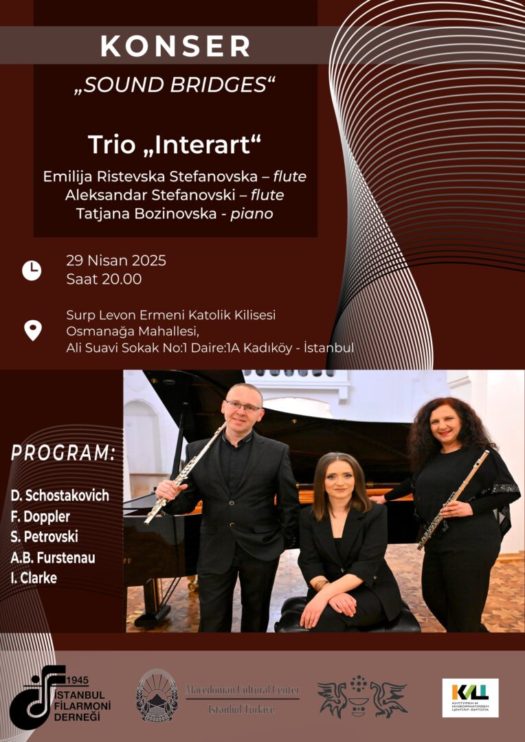 На 29 април љубителите на класичната музика ќе имаат можност да уживаат во концертот на македонското трио „Интерарт“, составено од истакнатите музичари Емилија Ристевска Стефановска (флејта), Александар Стефановски (флејта) и Татјана Божиновска (пијано). Настапот ќе се одржи во Македонскиот културен центар во Истанбул, Турција. Публиката ќе има прилика да чуе внимателно одбран репертоар со дела од познати композитори како Д. …