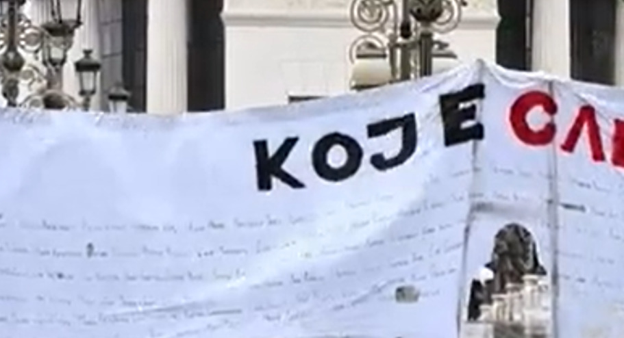 (Видео) Бело платно со имињата на жртвите од пожарот во Кочани пред Обвинителството