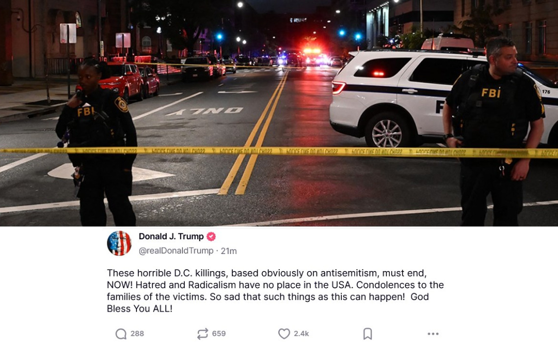 Американската државна обвинителка Пам Бонди на прес-конференција по пукањето пред Еврејскиот музеј во Вашингтон, во кое беа убиени две лица, изјави дека неколку пати разговарала со претседателот Доналд Трамп. „Во име на претседателот, неговите молитви се со сите нас – со еврејската заедница, со сите во Вашингтон и со државните, локалните и федералните агенции, како и со нашата одлична американска …
