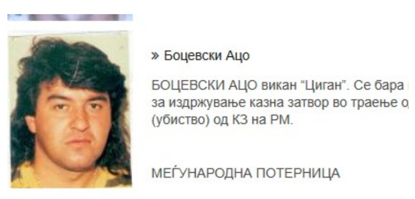 По 27 години бегство, во Грција е уапсен Ацо Боцевски, познат под прекарот Циганот, македонски државјанин осуден за убиство. Според МВР бил уапсен во грчкиот град Катерини. „Денеска (26.05.2025) од страна на грчката полиција сме известени дека го лишиле од слобода Ацо Боцевски кој беше баран со меѓународна потерница по наредба на Основен суд Скопје І од 30.06.1998 година за …