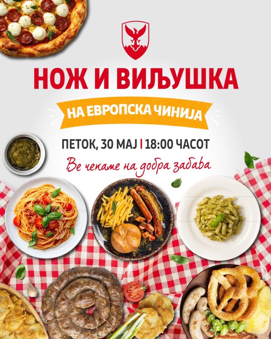 Градоначалникот Горан Герасимовски ги поканува скопјани денеска во 18.00 часот на добра традиционална македонска и европска трпеза во Паркот на Франкофонијата. Герасимовски вели дека културно-гастрономскиот настан „Нож и виљушка на европска чинија“ e можност за дружење, културна размена и зајакнување на заедништвото. „Денеска, со почеток во 18.00 часот повторно го организираме настанот ‘Нож и виљушка на европска чинија’, кадешто ќе …
