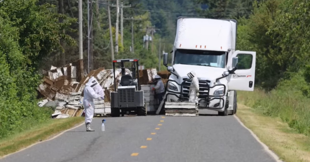 (Фото+видео) 250 милиони пчели излетаа откако камион што превезува кошници се преврте во САД