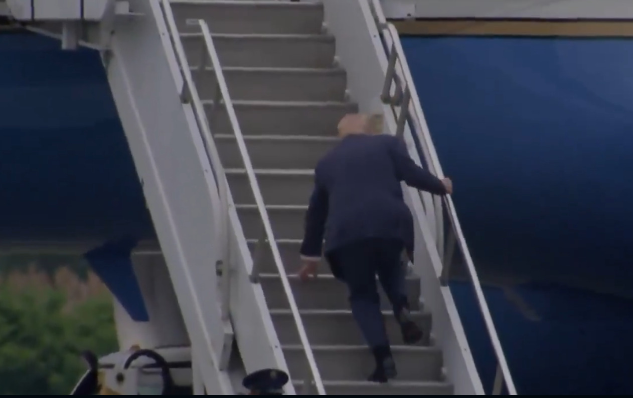 (Видео) Трамп се сопна по скали на авион – претходно му се исмеваше на Бајден за тоа