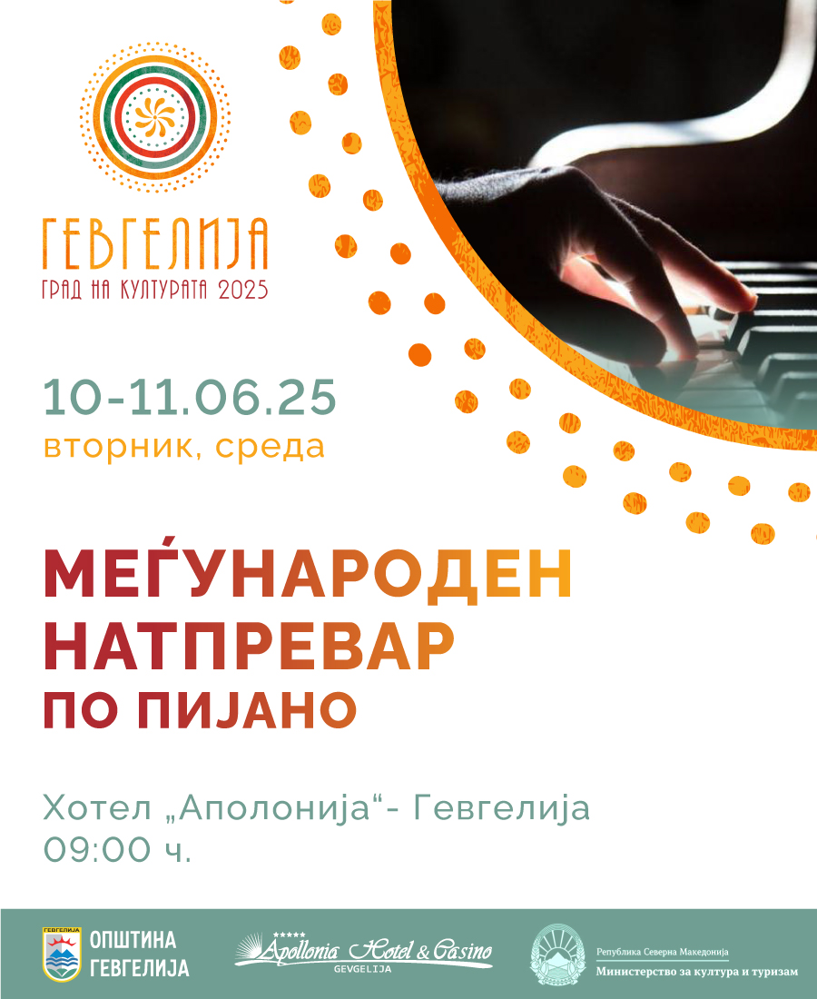 10 – 11 јуни: Меѓународен натпревар за млади пијанисти