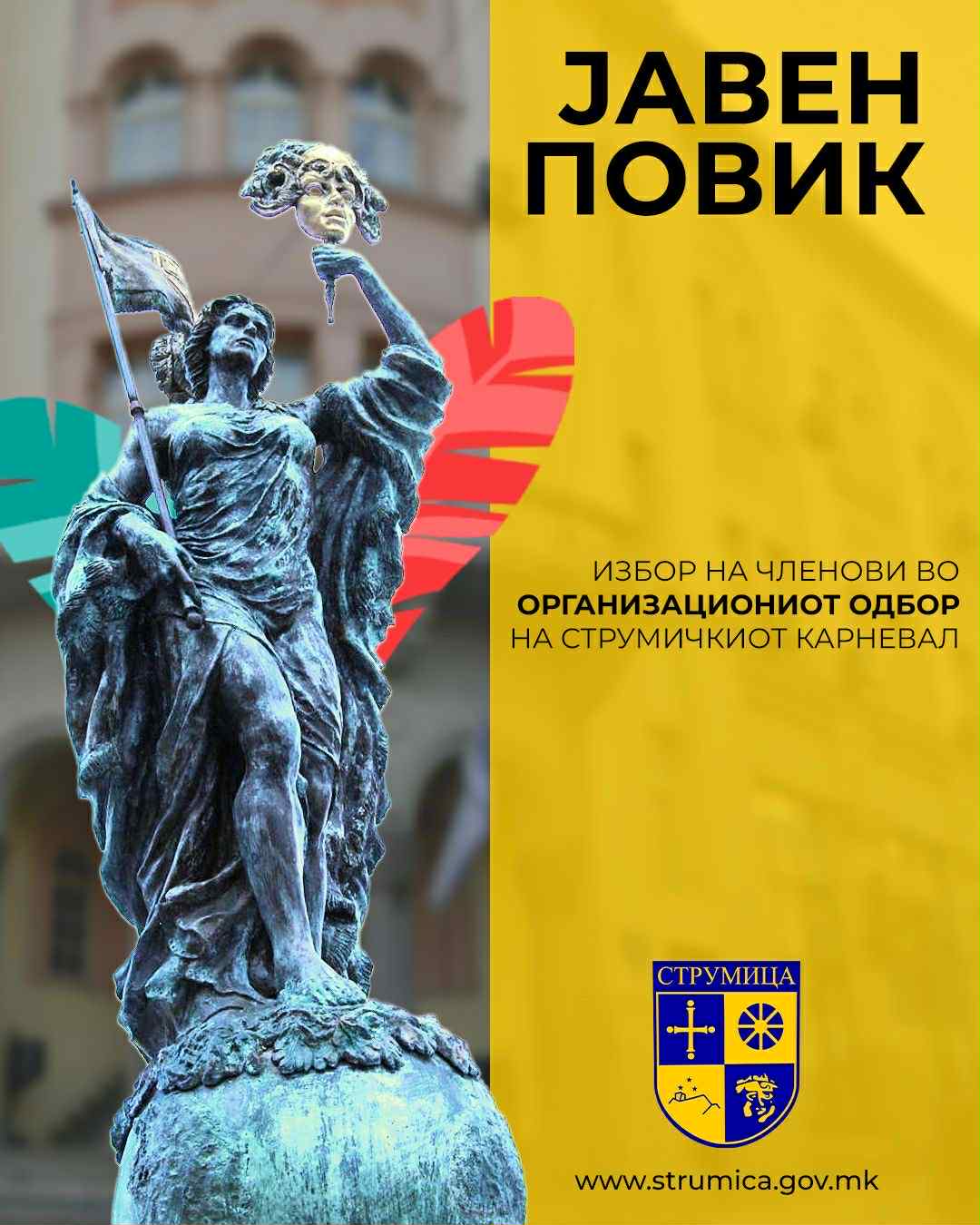 Се распишува јавен повик за избор на членови на Организациониот одбор на Струмичкиот карневал