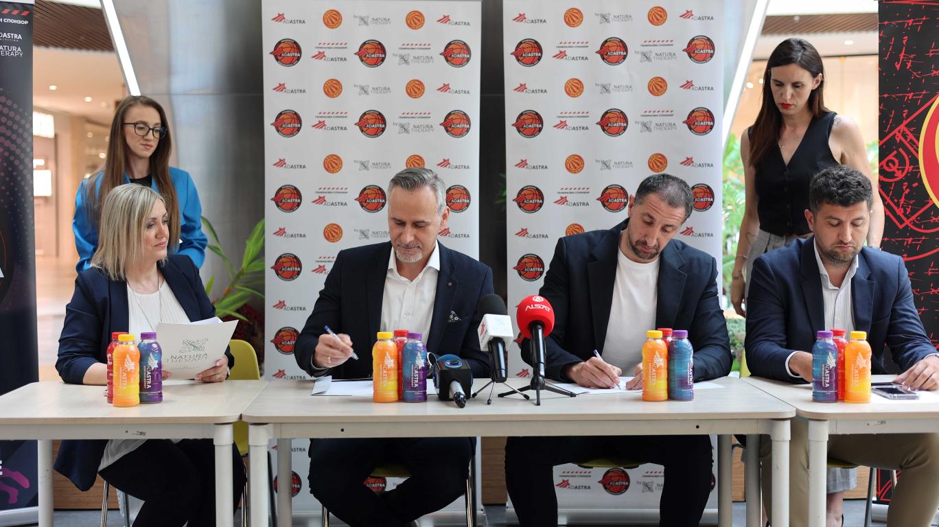 – Денес, во присуство на медиуми, партнери и претставници на двете институции, беше потпишан договор за стратешка соработка меѓу Кошаркарската федерација на Македонија (КФСМ) и Natura Therapy. Договорот беше официјално потпишан од потпретседателот на КФСМ г. Младен Ѓуроски и претставник на Natura Therapy г. Сашко Дрвошански. Со овој договор, Ad Аstra – под-бренд на компанијата Натура Терапи, синоним за спорт, …