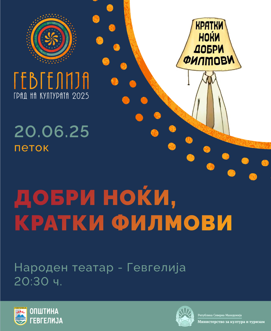 Во рамки на манифестацијата „Гевгелија град на културата за 2025 година“, љубителите на филмската уметност ќе имаат можност да уживаат во дводневниот филмски настан „Кратки ноќи добри филмови“, посветен на краткометражниот филм како форма што со сè поголема сила го освојува вниманието на светската и домашната јавност. Настанот ќе се одржи на 20 и 21 јуни 2025 година, на две …