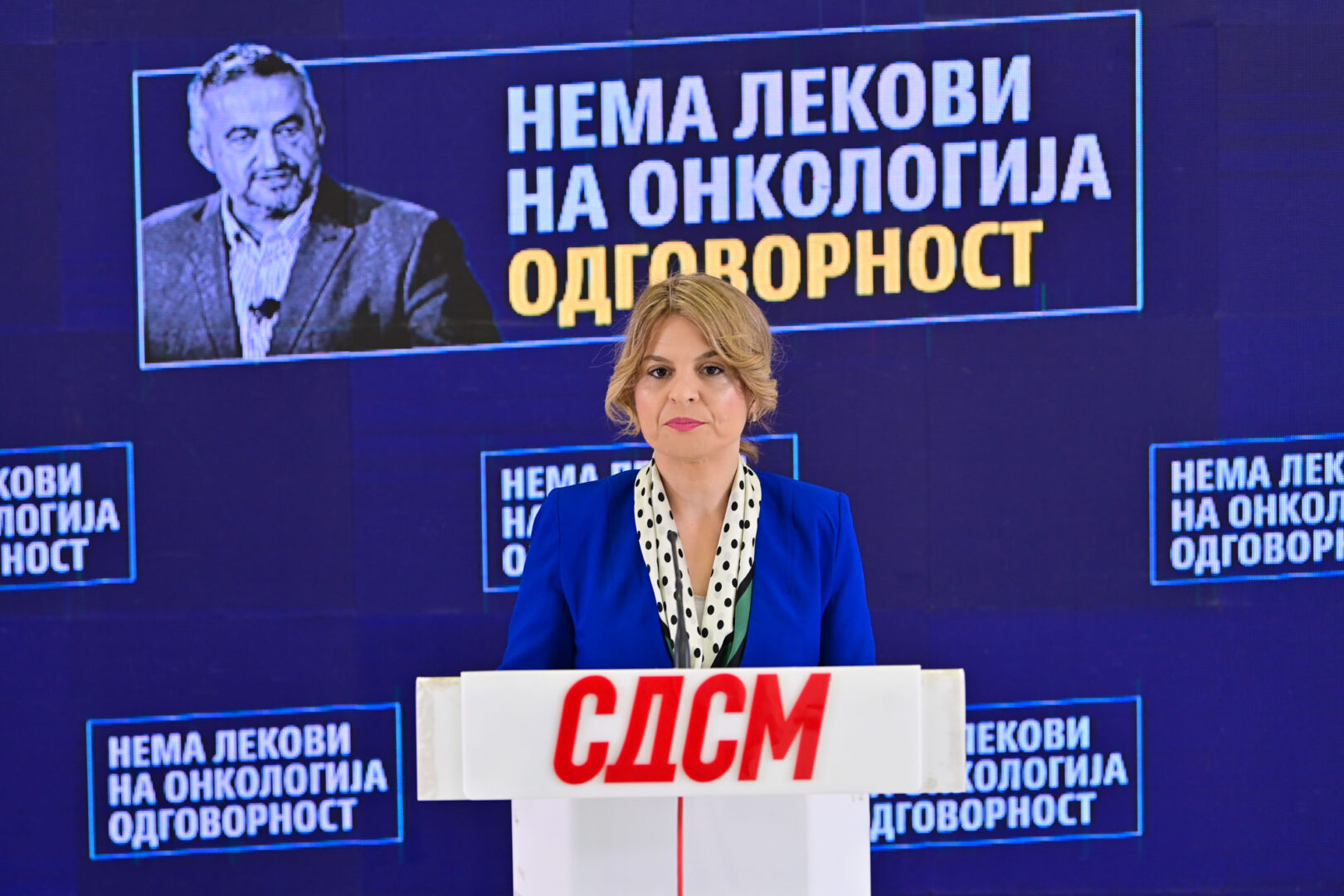 „Состојбата во здравството е катастрофална и нечовечна. Владата на ВМРО-ДПМНЕ, министерот за здравство и директорот на Фондот за здравство ги оставија пациентите со рак на бели дробови без терапија. Додека министрите заедно со уште по мининимум 5 до 10 луѓе од кабинетите патуваат на скапи службени патувања, пациенти со рак умираат во неизвесност, без основна хемотерапија, без лек“, кажа Елена …