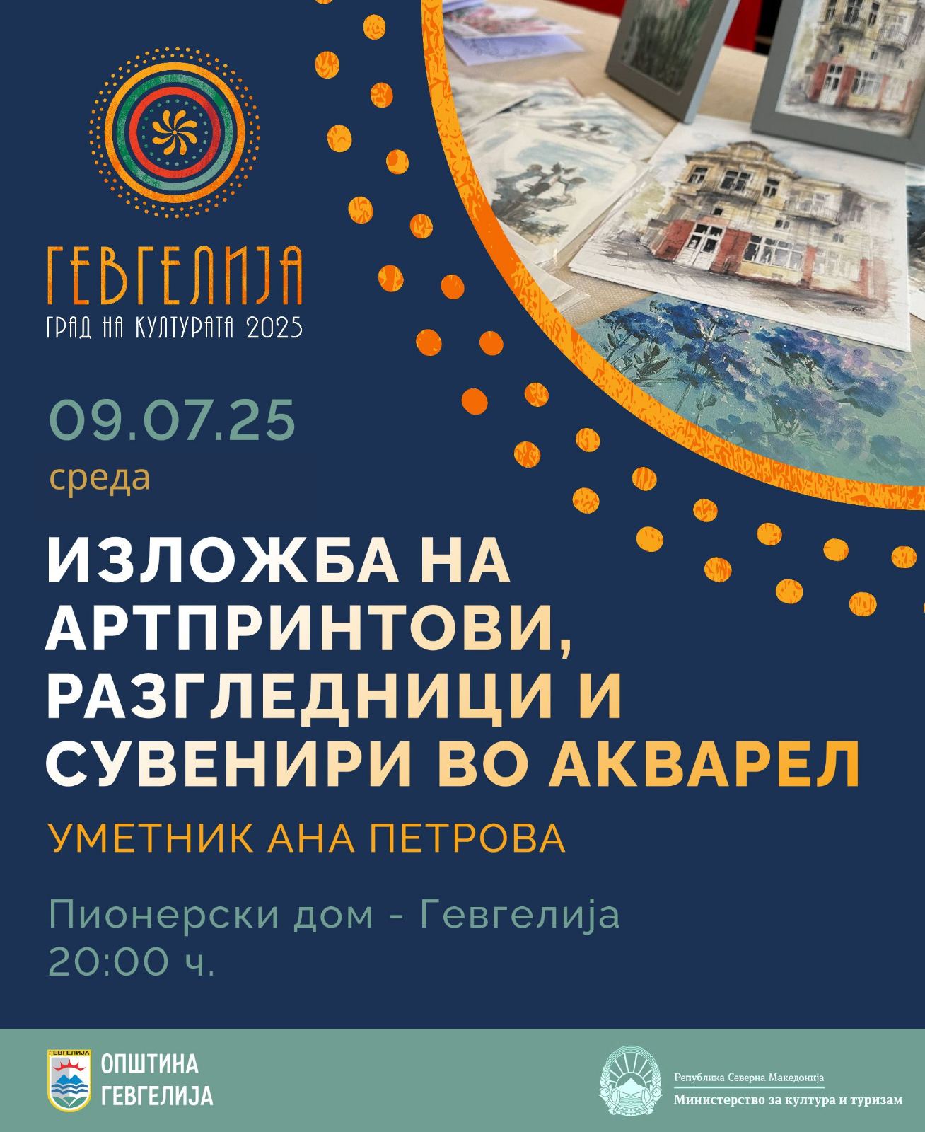 9 јули: Изложба на Ана Петрова- артпринтови, разгледници и сувенири во акварел