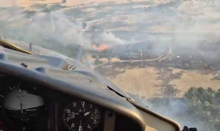 (Видео) Полициски хеликоптер вклучен во гаснење на пожарот во скопско Визбегово