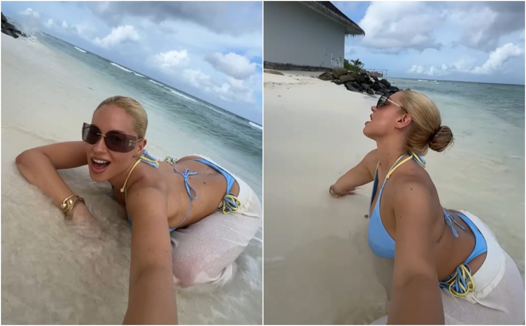 (Видео) Српска пејачка ги воодушеви сите со атрактивна снимка во костим за капење