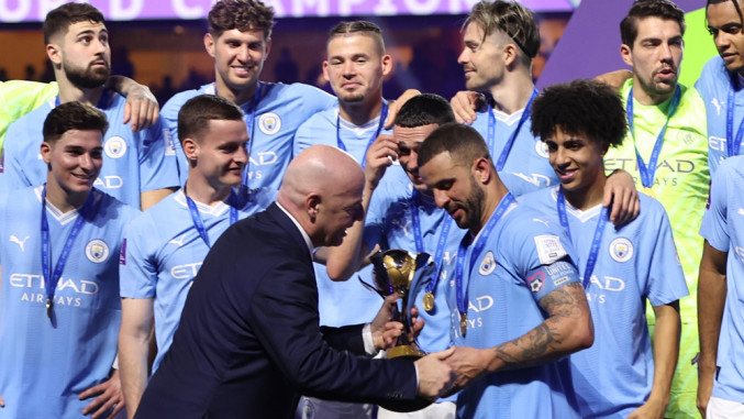 Foto/ EPA ФИФА почна да ја прекројува сопствената историја. За да се наметне важноста на Светското првенство за клубови со 32 екипи што неодамна се одржа во САД, од Цирих, на предлог на претседателот на ФИФА, Џани Инфантино, на 12 клуба им беше одземен статусот на светски шампион освоен во периодот од 2000 до 2023 година. Наместо светски шампиони, сите …