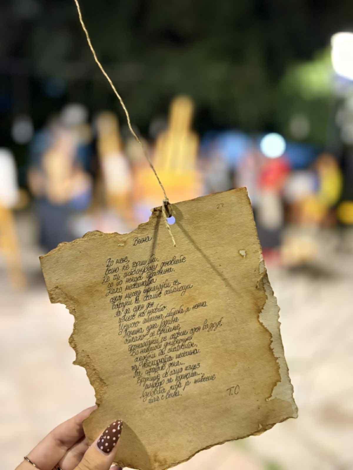 На 14 август 2025 година, платото пред Народниот театар во Гевгелија се претвори во отворено уметничко ателје. Под светлата на летната вечер, меѓу хартиени пораки, шишиња со скриени мисли и запечатени ковертчиња, се одржа арт перформансот „Писма“, во организација на ЈОУ Дом на култура „Македонија“- Гевгелија, дел од програмата „Гевгелија град на култура за 2025 година“. Трите млади уметнички од …
