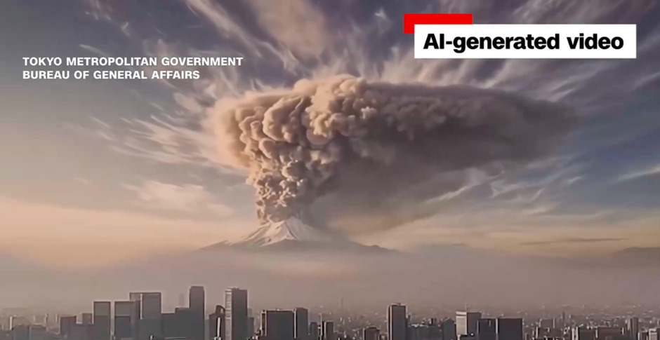 Токио објави видео од вештачка интелигенција од ерупцијата на вулканот Фуџи за да ги подготви жителите