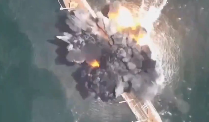 (Видео) Русите го снимија моментот на напад врз украински воен брод
