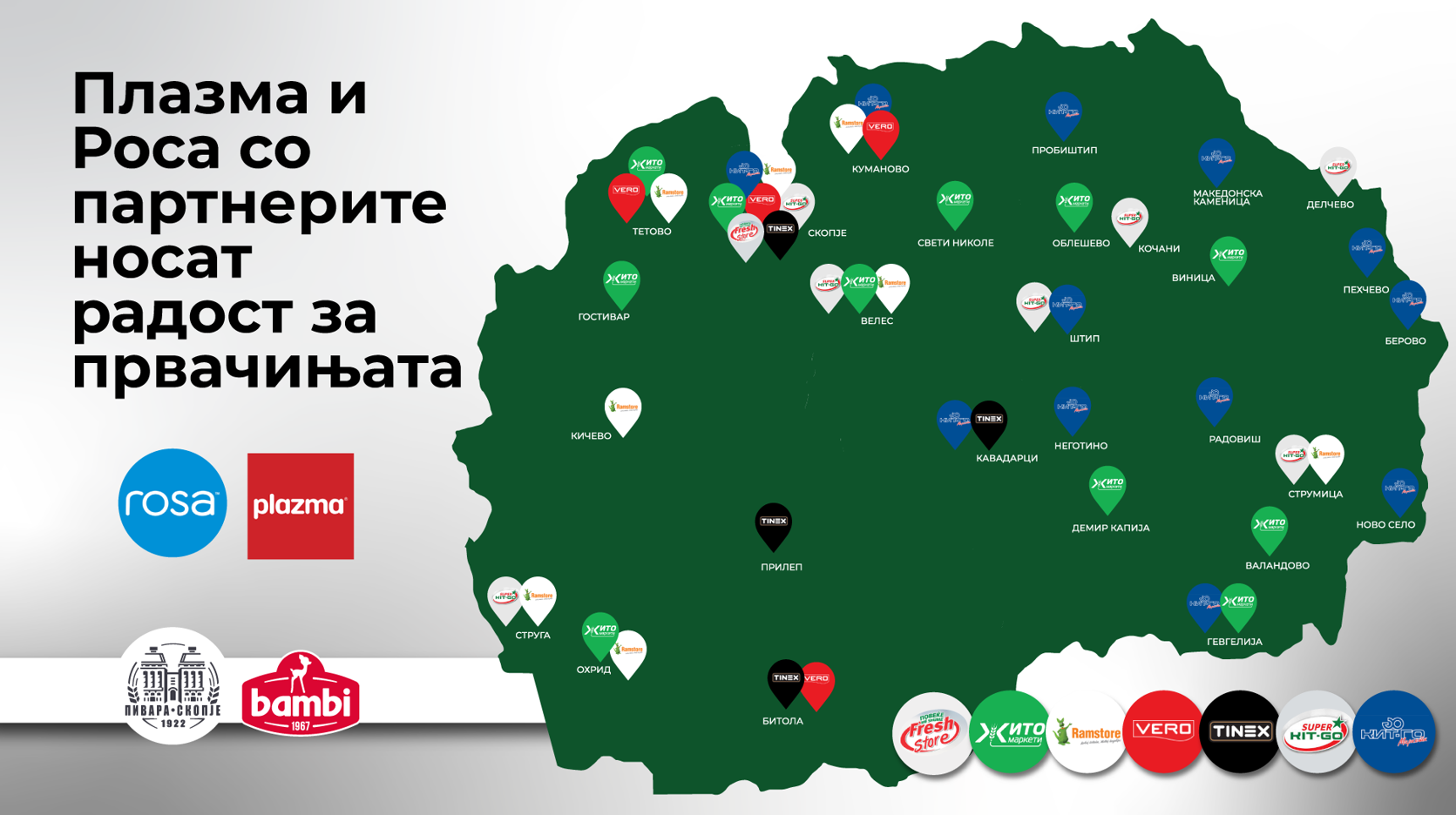Регионалната акција на Плазма и Роса доби силна поддршка од партнерските маркети, кои се приклучија во мисијата првачињата да добијат подарок-пакетчиња на почетокот на учебната година. – Пивара Скопје со брендот Роса и компанијата Бамби со брендот Плазма се цврсто посветени на својата мисија да придонесуваат за заедницата и да ги поддржуваат најмладите генерации. Акцијата на Плазма и Роса, во …