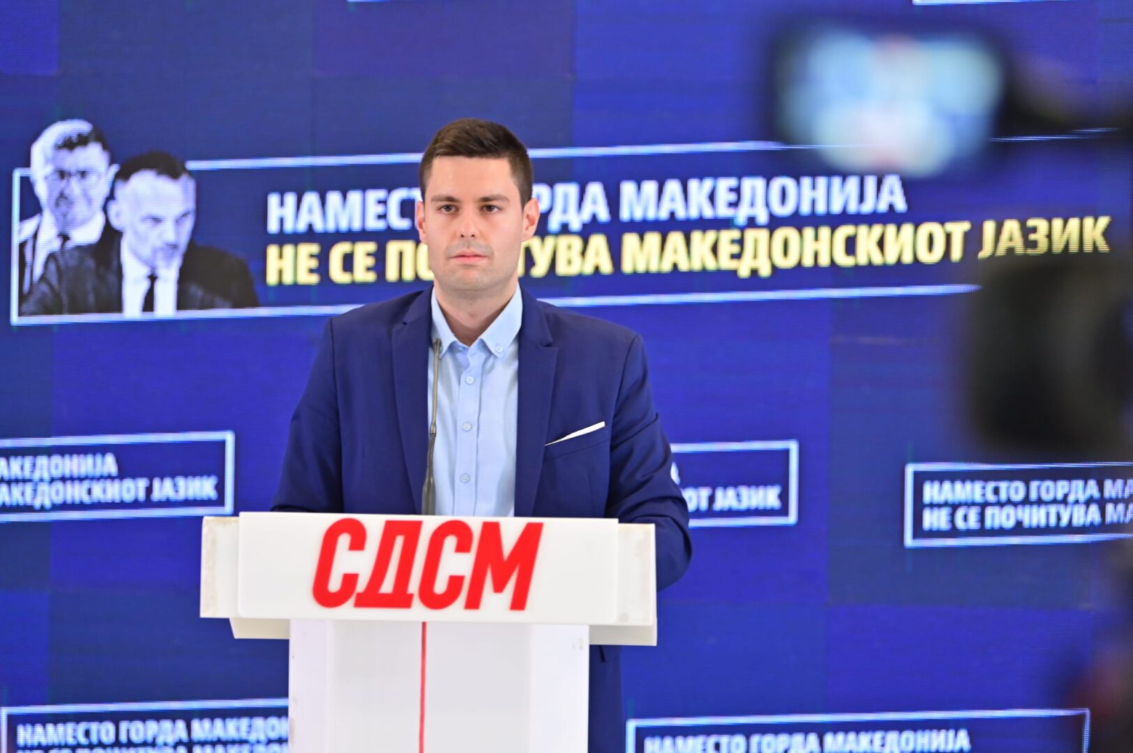 „Владата на ВМРО-ДПМНЕ не испорача „историки резултати“ а наместо „горда Македонија“ коалициски партнери во Владата не го почитуваат ниту македонскиот јазик. На официјално обраќање, Вицепремиерот Арбен Фетаи, одби да одговара на македонски јазик. Со ладнокрвност порача дека „уште не бил спремен на македонски“. Тоа го кажа човек на висока функција во Владата на Мицкоски“, рече Јовица Јанковиќ, СДСМ. „А од …