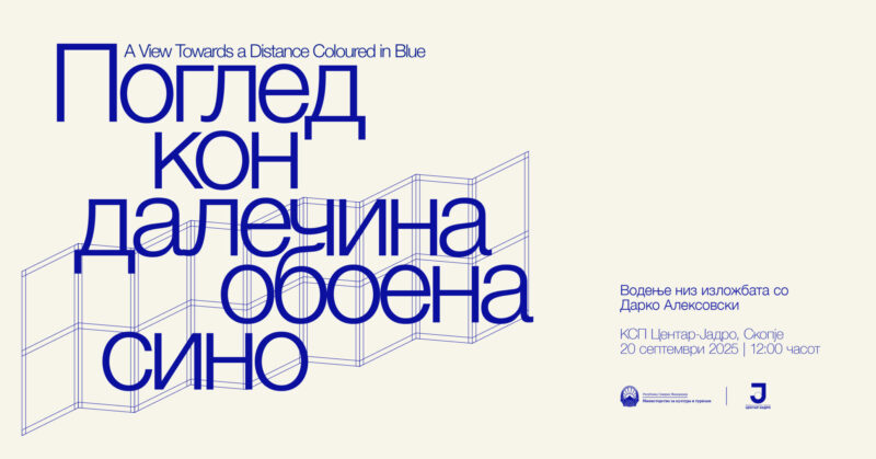 На 20 септември (сабота) во 12.00 часот ќе биде отворена изложбата „Поглед кон далечина обоена сино“ заедно со Дарко Алексовски во КСП Центар-Јадро. На оваа прошетка уметникот ќе зборува за развивањето на идеите кои ги собраа различните, досега неизложувани дела во една целина, како и за теориските и референците од историјата на уметноста. Средбата ќе биде од неформален карактер, а …
