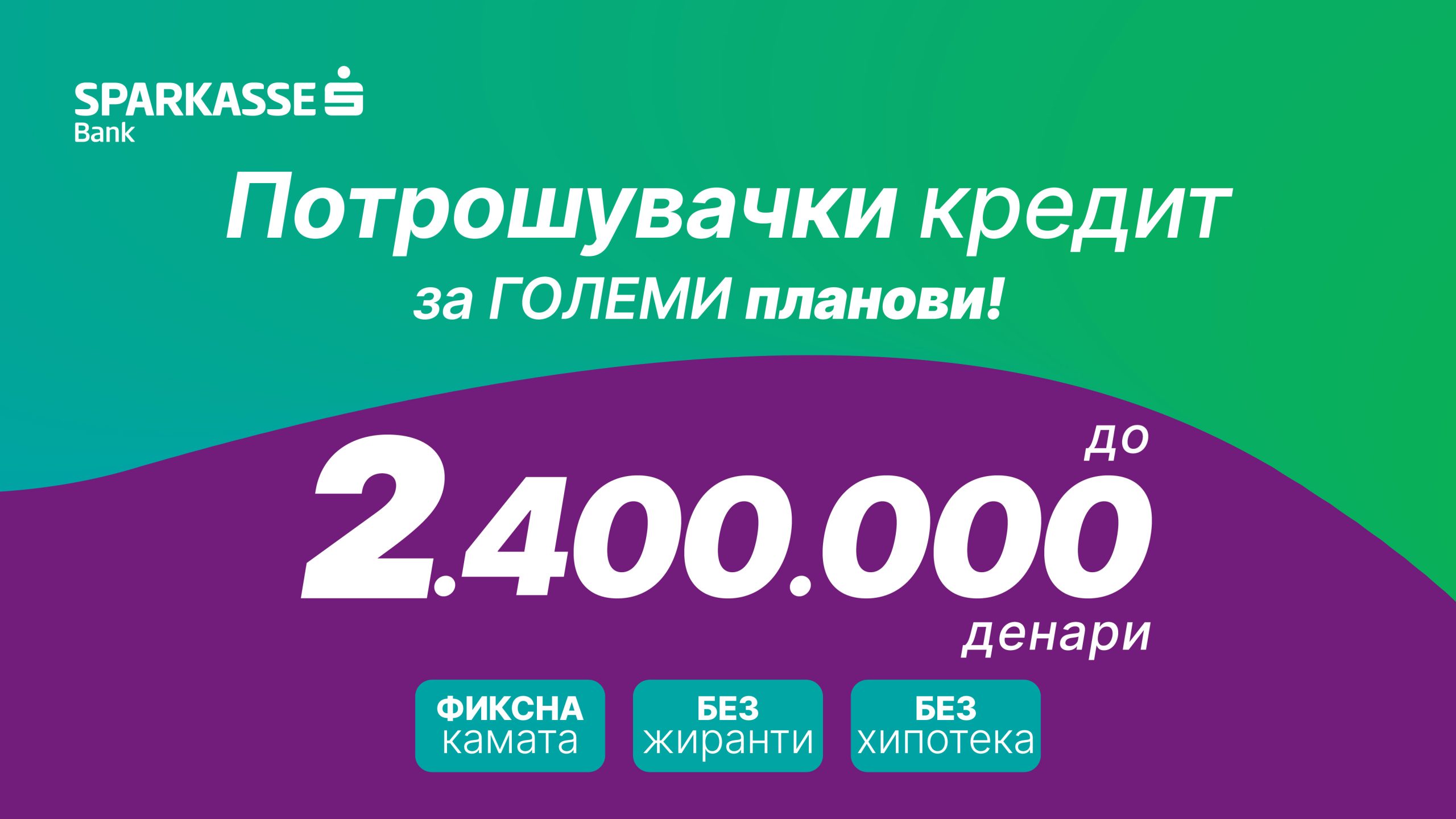 Шпаркасе банка со единствена понуда на пазарот – потрошувачки кредит до 2,4 милиони денари со фиксна рата, без хипотека и без жиранти