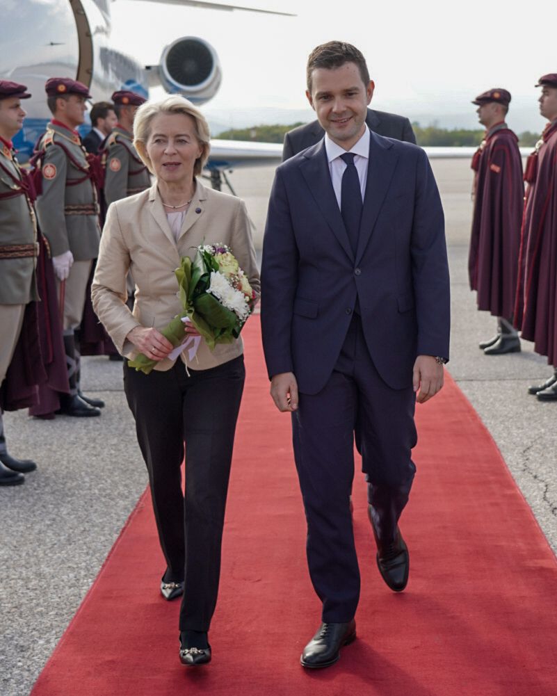 Денес во просториите на Владата, премиерот, Христијан Мицкоски, имаше средба со претседателката на Европската комисија, Урсула фон дер Лајен, во рамки на нејзината балканска турнеја. Мицкоски информира дека на средбата се разговарало за европската перспектива, напредокот на реформските процеси, економската соработка, енергетската безбедност и дигиталната трансформација. „Ја истакнав решеноста на Владата да ја забрза евроинтеграцијата на државата преку конкретни резултати …