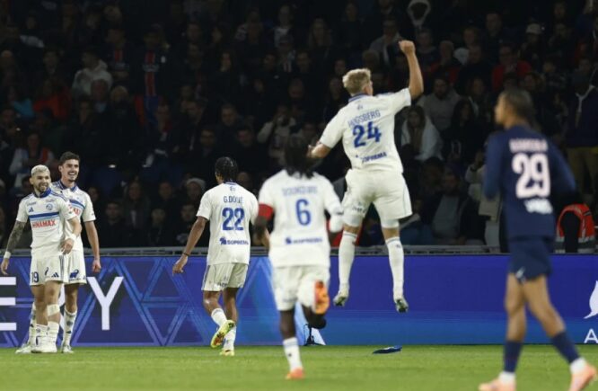 Фудбалерите Пари Сен Жермен и Стразбур ремизираа 3:3 во дербито на осмото коло од Лига 1. Луд натпревар беше виден на „Паркот на принцовите“. Домаќинот трган фуриозно, а на крајот мораше да се бори за еден бод. Сè започна со голот на Баркола во шестата минута, но гостите до полувремето направија пресврт, со головите на Паничели во 26-та и Мореира …