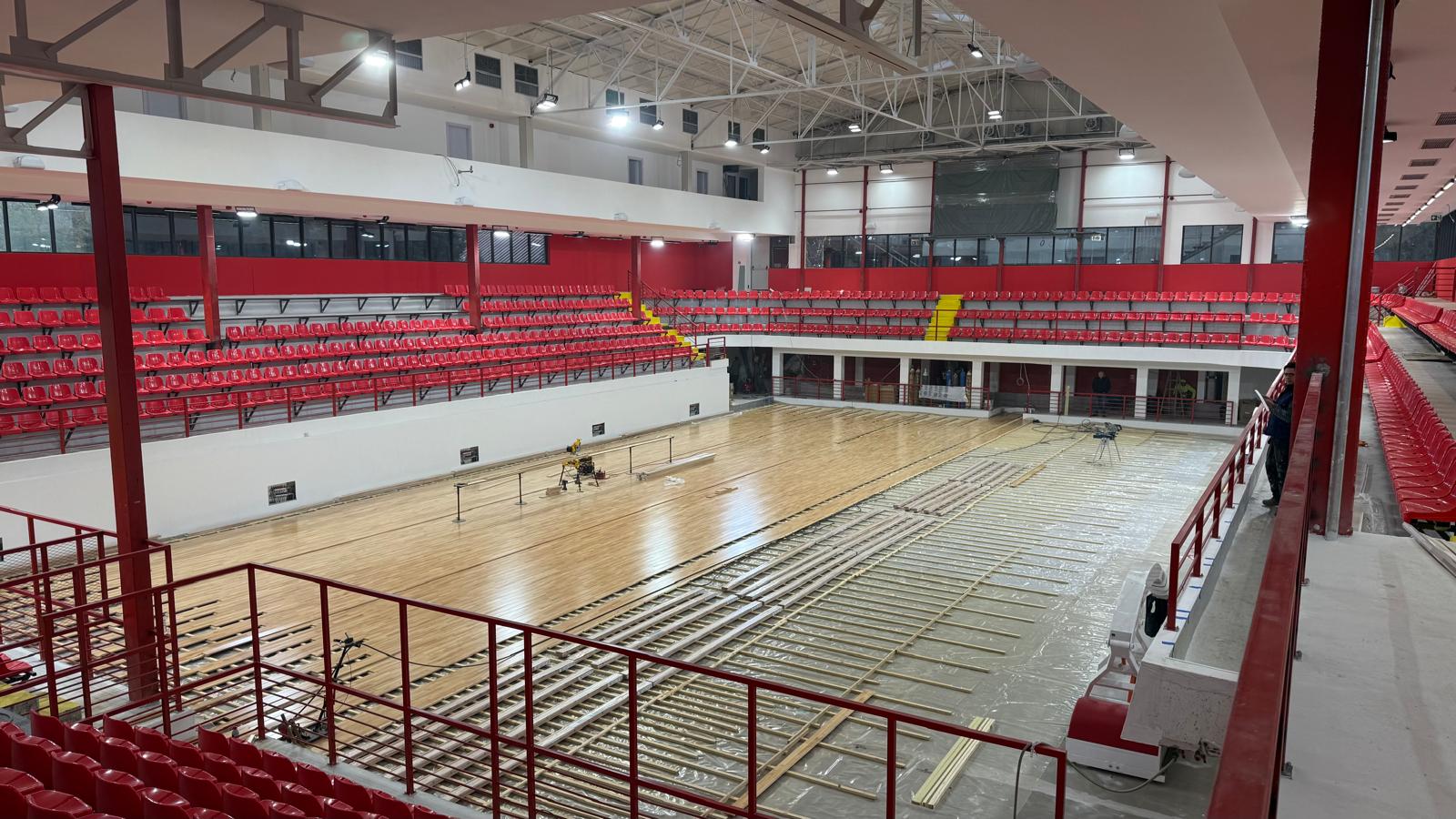 (Фото) Герасимовски: Работнички добива модерна ФИБА сала, паркетот се поставува, се монтираат семафорите