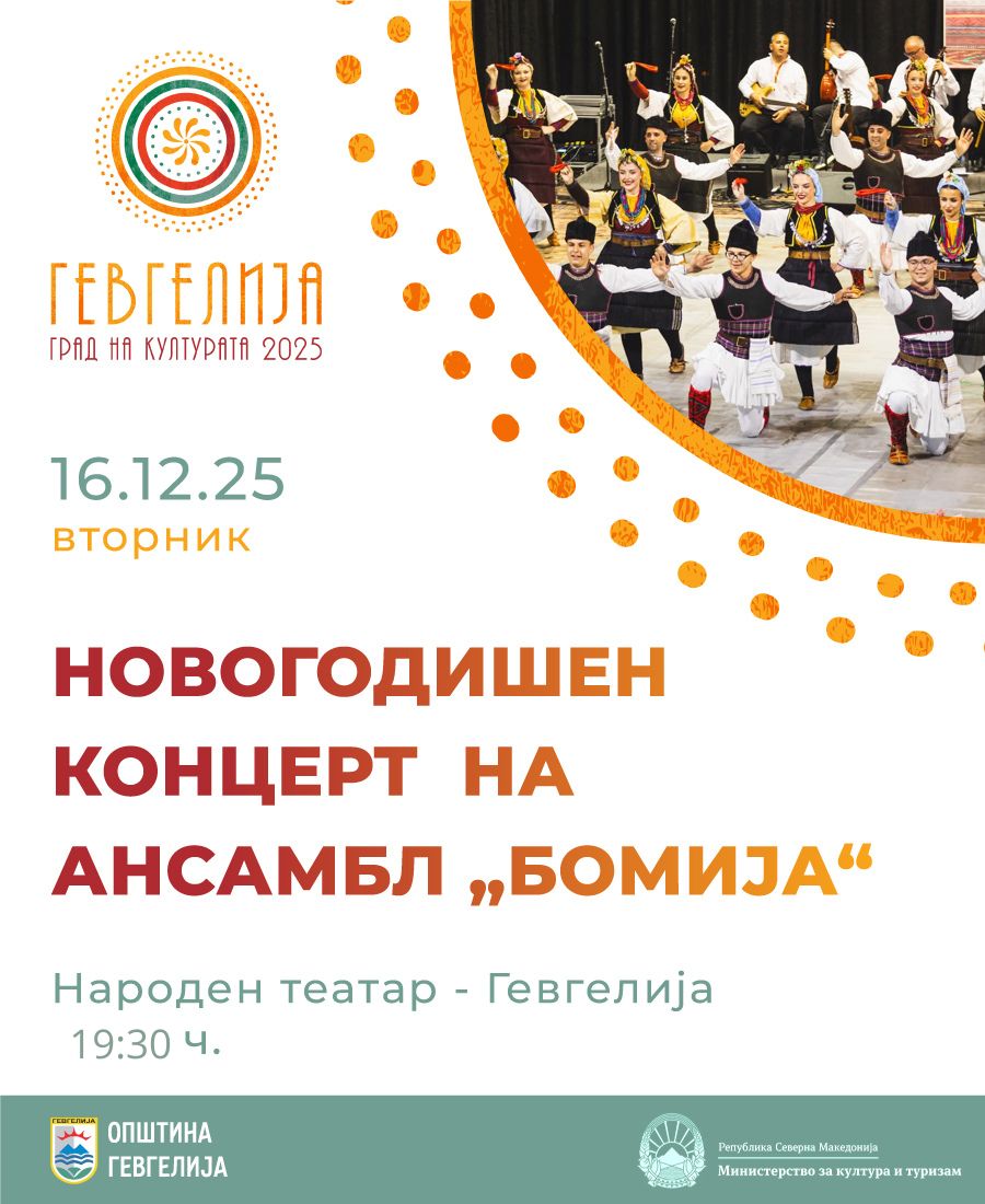 16 декември: Новогодишен концерт на Ансамбл „Бојмија“- Гевгелија, „Чекори низ времињата“