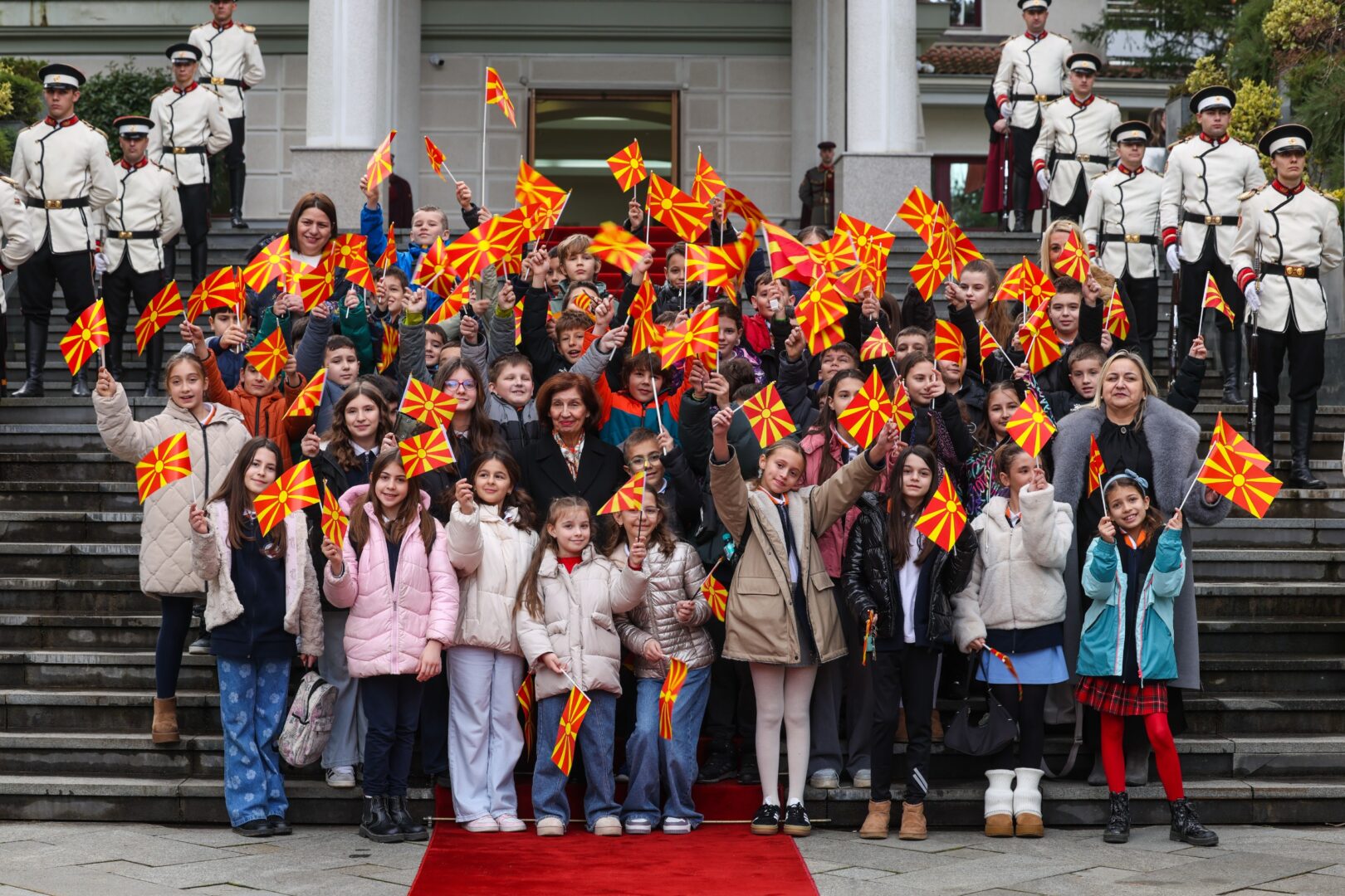 Повеќе од 170 основци од скопските училишта „Ѓорѓија Пулевски“ и „Кочо Рацин“ и од училиштето „Св. Наум Охридски “ од Охрид, денеска ја проследија церемонијата на свечено менување на државното знаме, којашто во Кабинетот се одржува секој втор петок во месецот во знак на оддавање почит кон државата. Во присуство на бројни претставници на Армијата, учениците, заедно со своите наставници …