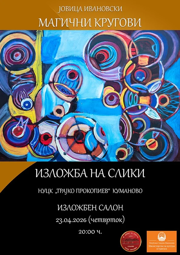 На 23 април, четврток, со почеток во 20 часот во Изложбениот салон на НУ Центар за култура „Трајко Прокопиев“ – Куманово ќе се отвори самостојна изложба на слики со наслов „Магични кругови“. Се работи за 22 слики (акрил и масло на платно) од неговата најнова продукција работена во последните неколку години и истата претставува продолжување на неговиот повеќегодишен претходно развиен …